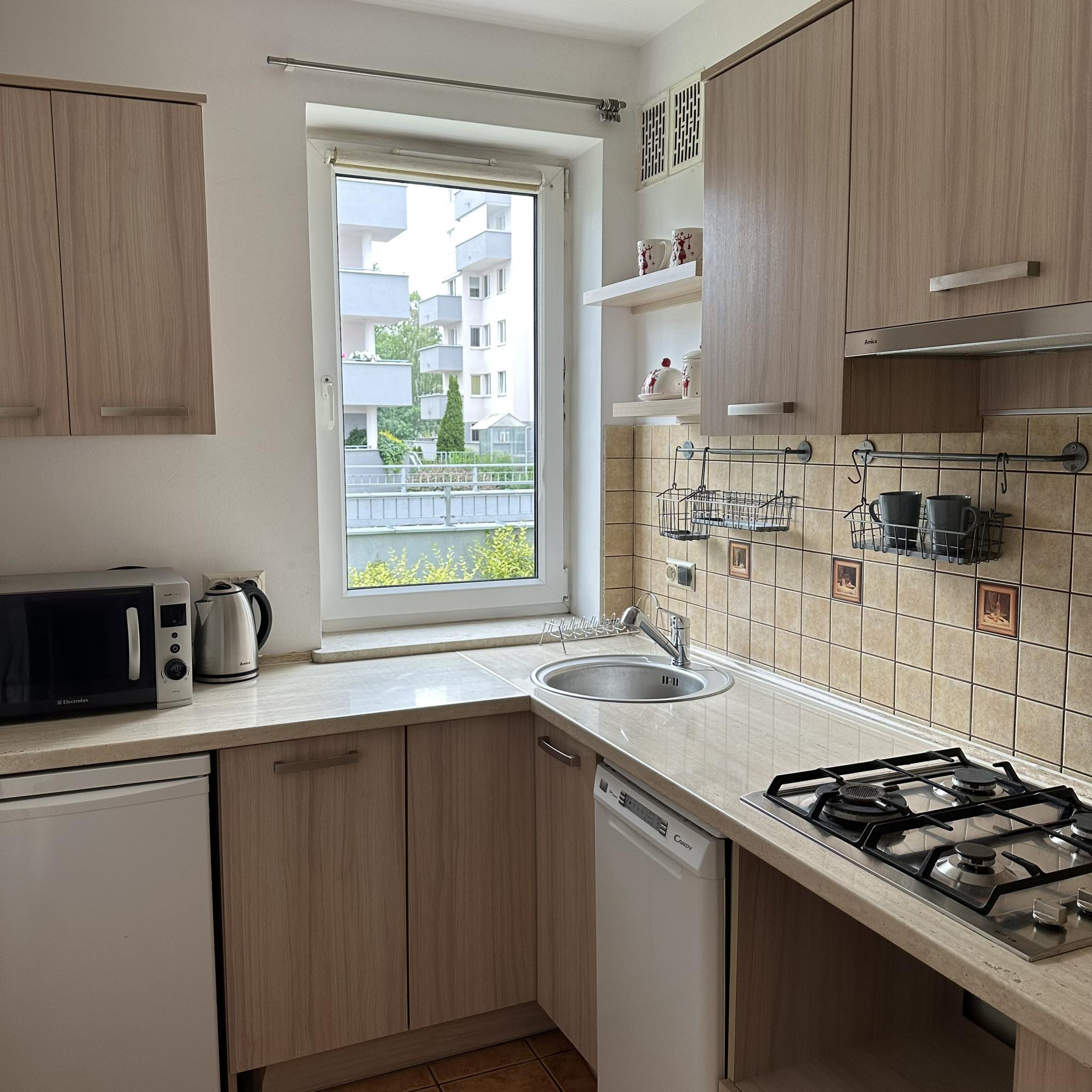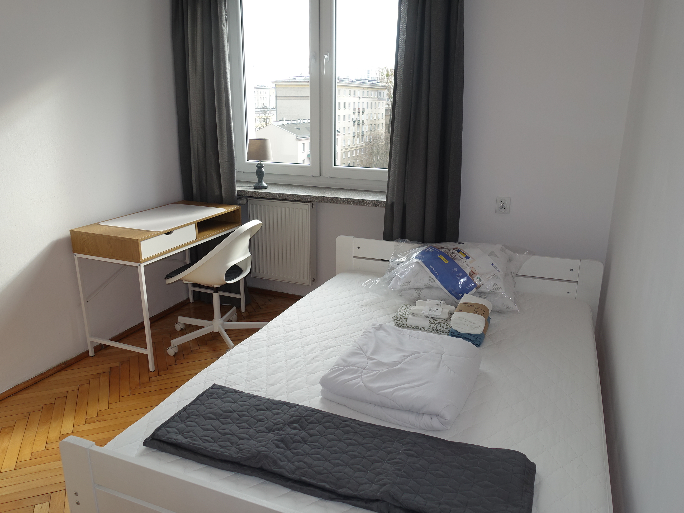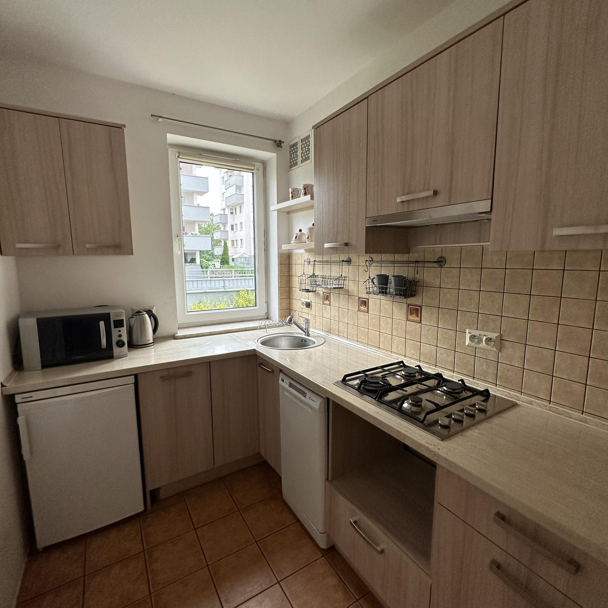 Mieszkanie jednopokojowe w nowoczenym budynku na warszawskiej Białołęce w zielonej części dzielnicy. Parter z dyskretnym ogródkiem. Dodatkowym atutem jest miejsce postojowe w garażu podziemnym. Pokój z dużym podwójnym łóżkiem, z telewizorem i miejscem do pracy zdalnej. Oddzielna, widna kuchnia wyposażona w sprzęt AGD, również w zmywarkę.Bez piekarnika ale jest mikrofalówka. Przedpokój z zabudowaną dużą szafą na ubrania, dodatkowo wieszak i szafka na buty. Łazienka z dużą narożną wanną. W wyposażeniu pralka. Osiedle zadbane, zamknięte i strzeżone. W równej odległości do komunikacji : Mehoffera, Światowida i Modlińskiej. Autobusy i tramwaje. Bardzo blisko Galeria Północna z licznymi sklepami, dalej Galeria Modlińska z Auchan i Leroy Merlin. W okolicy Lidl i Biedronka.Dostępne od zaraz. Kaucja 3000 PLN. Dla niepalących i bez zwierząt. W czynszu zawarte zaliczki na c.o. i wodę. Dodatkowo płatna energia i gaz. Obowiązkowe OC najemcy na okres najmu (małe koszty).