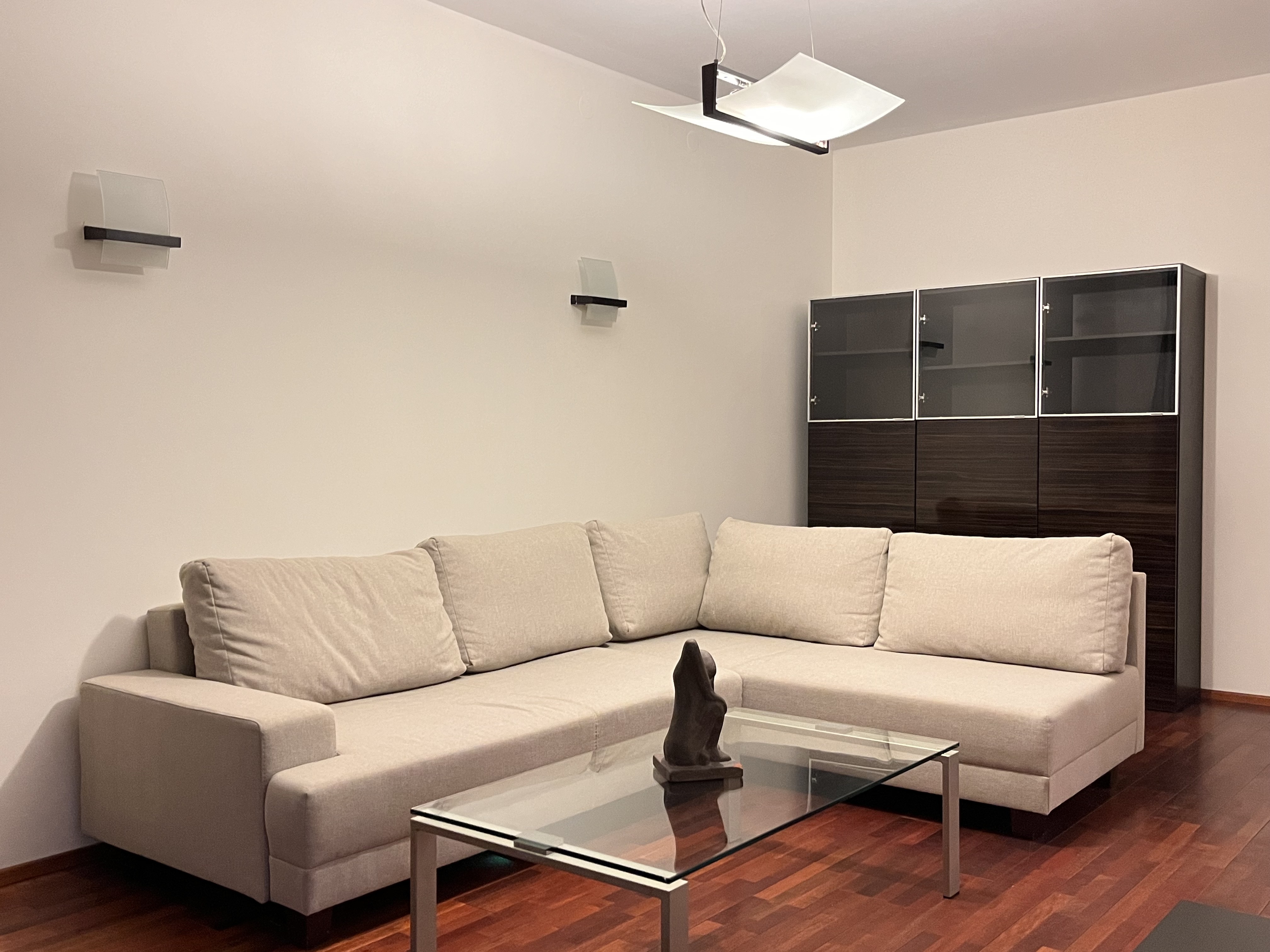 Nowoczesne mieszkanie na osiedlu Ostoja Wilanów przy Bazylice. Z własną przestrzenią parkową dostępną tylko dla mieszkańców. Mieszkanie w wysokim standardzie na ul. Hlonda 10 A na ostatnim 4 piętrze. Klimatyzacja w mieszkaniu. Na 76,43 m3 składa się przestronny salon w pełni umeblowany wraz z telewizją i internetem. Wygodny olbrzymi narożnik, serwantka, komoda rtv, stylowa lampa i krzesła. W pomieszczeniu nowa klimatyzacja. Do salonu przylega duża loggia z miejscem do wypoczynku, wyposażona w teakowe meble (ławka, fotel i stolik). Sypialnia z pojemną 3 drzwiową szafą i dużym dwuosobowym łóżkiem, z kompletem poduszek i kołdrą. Gabinet wyposażony w rozkładany narożnik, miejscem do pracy i ćwiczeń gimnastycznych. Duża łazienka z prysznicem i ogromnym lustrem, powiększającym wizualnie pomieszczenie. Oddzielna kuchnia wyposażona w meble na wymiar oraz całkowity sprzęt AGD w tym w zmywarkę. Stół z krzesłami. Wszystkie sprzęty do gotowania i jedzenia w wyposażeniu. Bardzo duży przedpokój łączący wszystkie pomieszczenia z zabudowaną 2 drzwiową szafą oraz otwartą garderobą na okrycia i buty. Dodatkowe pomieszczenie gospodarcze na sprzęt do utrzymania czystości (odkurzacz, mop itp w wyposażeniu) oraz pralka, deska do prasowania i żelazko. Dużo regałów do przechowywania rzeczy. W całym mieszkaniu drewniana podłoga o ciepłej barwie. Dodatkowym atutem jest 1 miejsce postojowe w garażu podziemnym na poziomie -1. Istnieje mozliwość wynajęcia dodatkowego miejsca postojowego obok w cenie 300 PLN/miesięcznie. Mieszkanie bardzo ciche, budynek w głębi osiedla, nie przy ulicy. Bogata infrastruktura małych sklepów spożywczych (Żabki, Lidl, Biedronka), usługowych (dużo kosmetycznych), mały warzywniak na rogu ulicy, piekarnia, puby i małe restauracyjki. Bardzo blisko Szkoła Brytyjska, cudzoziemcy mile widziani.Dla niepalących i bez zwierząt. Obowiązkowe OC najemcy na cały okres najmu (małe koszty). Kaucja 6.200 PLN. Czynsz administracyjny w cenie. Zaliczki na media w czynszu. Dodatkowo płatna energia. Dostępne od zaraz.