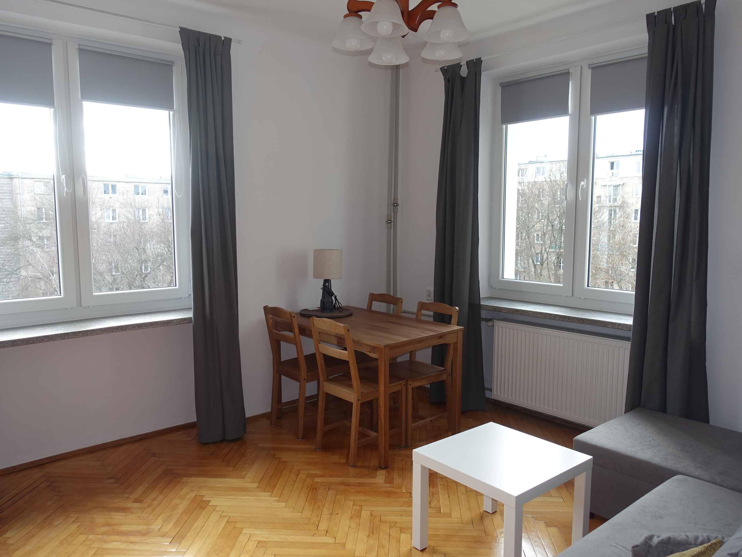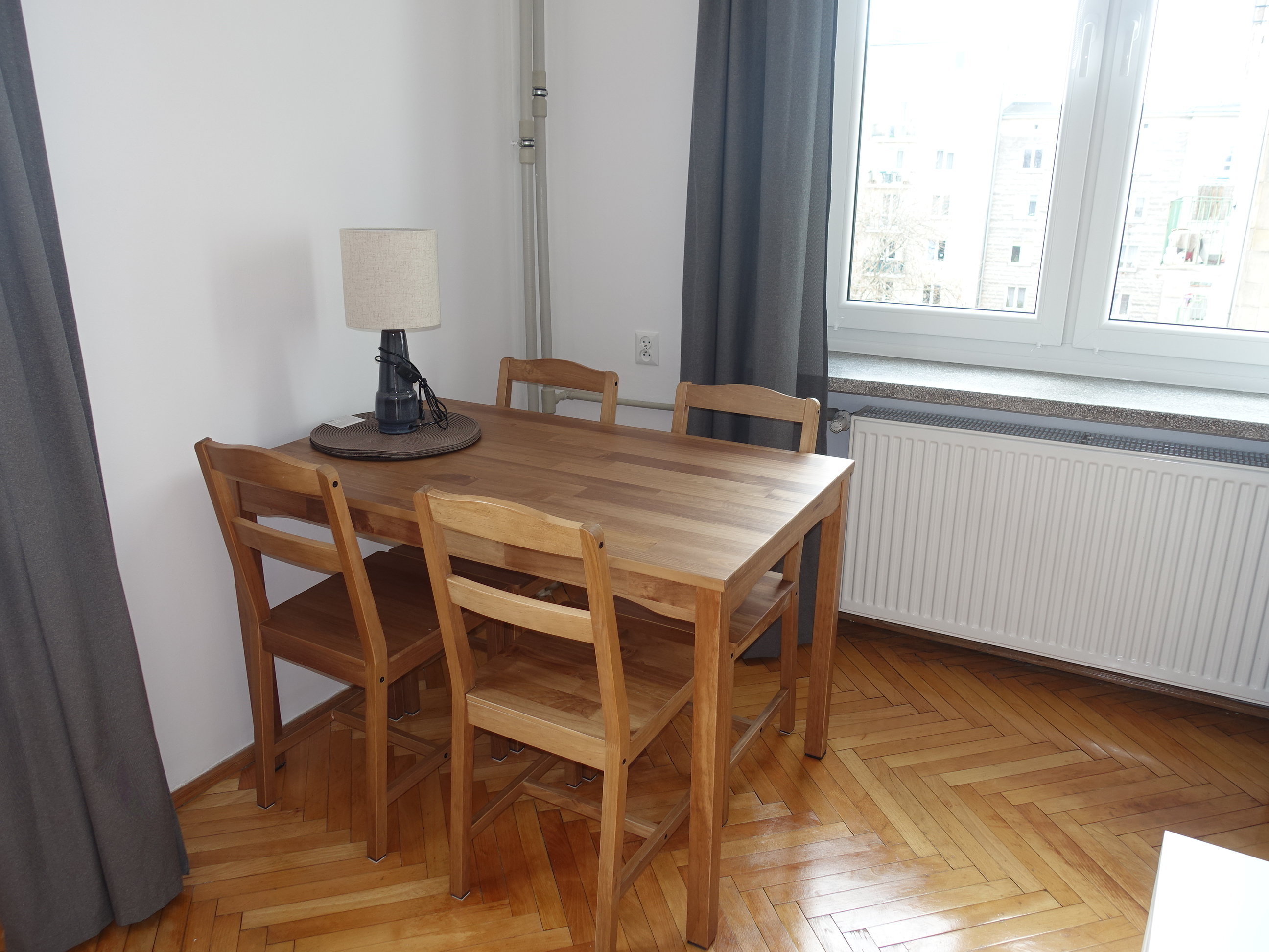 Mieszkanie po odświeżeniu w starej kamienicy na ul. Dorotowskiej 2. Cicha, wewnętrzna ulica, równoległa do Grójeckiej, z widokiem na duży teren zieleni, z miejscem na sport i odpoczynek. Mieszkanie składa się z dwóch oddzielnych, nieprzechodnich i zamykanych pokojów, wyposażonych w meble. Jeden w podwójne łóżko, stolik z miejscem do pracy i szafą, drugi w rozkładany narożnik, komody oraz stół z krzesłami. Pokoje widne, z oryginalnym nowo lakierowanym dębowym parkietem w bardzo dobrym stanie. Nowe okna w całym mieszkaniu. W oknach nowe rolety i nowe zasłony. Oddzielna kuchnia, wyposażona w sprzęt AGD oprócz zmywarki. Przestronny przedpokój składający się z dwóch części : małego przedpokoju z zabudowanymi szafkami oraz wieszakami na ubrania, oraz holu z bardzo dużą pojemną dwudrzwiową szafą i pawlaczami. Łazienka z nową kabiną prysznicową, pralką oraz dyskretnie schowanym w.c. Budynek monitorowany, 5 piętro. Winda. W pobliżu wiele różnych sklepów, warzywniak, restauracje, usługi, teatry i dom kultury Ochota OKO. Niedaleko Pola Mokotowskie. Bardzo dobry punkt komunikacyjny. Blisko na uczelnię medyczną i różne wydziały Uniwersytetu Warszawskiego na ul. Pasteura.W czynszu zawarte już opłaty administracyjne, w tym zaliczki na wodę i centralne ogrzewanie. Dodatkowo płatny gaz i energia. Kaucja 3.700 PLN. Dla niepalących i bez zwierząt. Obowiązkowe OC najemcy na cały okres najmu (małe koszty). Mieszkanie dostępne od zaraz.
