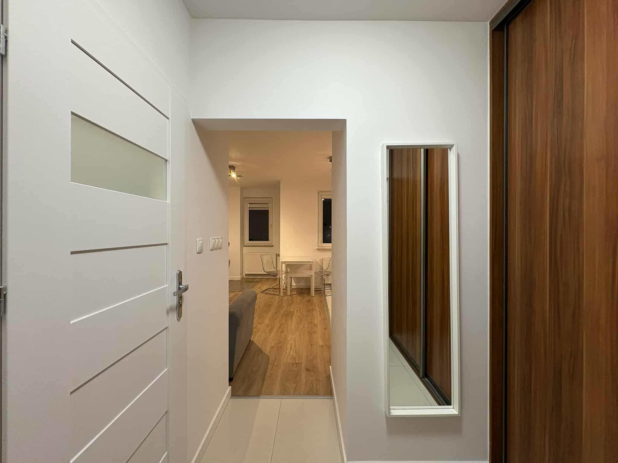 Do wynajęcia nowe mieszkanie o powierzchni 37 m² przy ul. Krośniewicka 5, Warszawa. Lokal w świeżo wybudowanym budynku, wykończony w nowoczesnym standardzie z wysokimi sufitami i ogrzewaniem podłogowym. Mieszkanie składa się z : salonu z aneksem kuchennym (z wyjściem na balkon), sypialni, dużej łazienki z prysznicem oraz przedpokoju. W salonie znajduje się rozkładana sofa, w sypialni rozkładane łóżko oraz przestronna szafa. Kuchnia jest w pełni wyposażona: zmywarka, płyta indukcyjna, piekarnik, lodówka. Dodatkowo mieszkanie posiada klimatyzację, a miejsce parkingowe w garażu podziemnym jest w cenie. Lokalizacja zapewnia wygodę codziennego życia – wszędzie blisko. Do stacji Metro Zacisze około 150 metrów, do stacji Metro Trocka około 850 metrów pieszo. 1 km do lasku Bródnowskiego i terenów rekreacyjnych. W pobliżu sklepy spożywcze, m.in. Sklep Lewiatan w odległości 300 m i Sklep Spożywczy M&M (Zielone Zacisze). Dostępna jest dobrze rozwinięta infrastruktura handlowa. W okolicy są także restauracje, punkty usługowe, apteki, szkoły i przedszkola. Mieszkanie gotowe do wprowadzenia od zaraz.Dla niepalących i bez zwierząt. W czynszu zawarte zaliczki na wodę i c.o. Dodatkowo płatna energia wg zużycia. Obowiązkowe OC najemcy na cały okres najmu (małe koszty). Kaucja 4.500,00 PLN. Dostępne od zaraz.